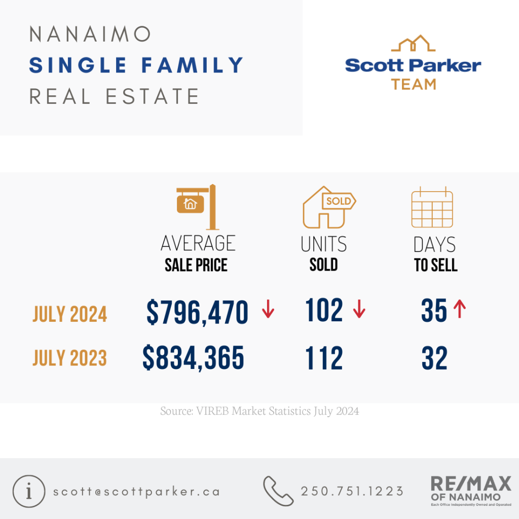 The Vancouver Island Real Estate Board (VIREB) recorded 737 unit sales board-wide and 4,559 active listings (all property types) on the MLS® System in July 2024. In the single-family category (excluding acreage and waterfront), 363 homes sold in July, down 11 percent from one year ago and up one percent from June. Sales of condo apartments last month came in at 87, decreasing