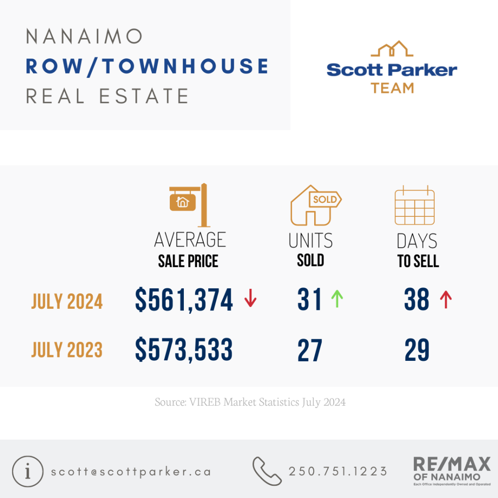 by nine percent year over year and up six percent from June. In the row/townhouse category, 99 units changed hands in July, up 16 percent from one year ago and nine percent from June.